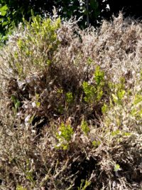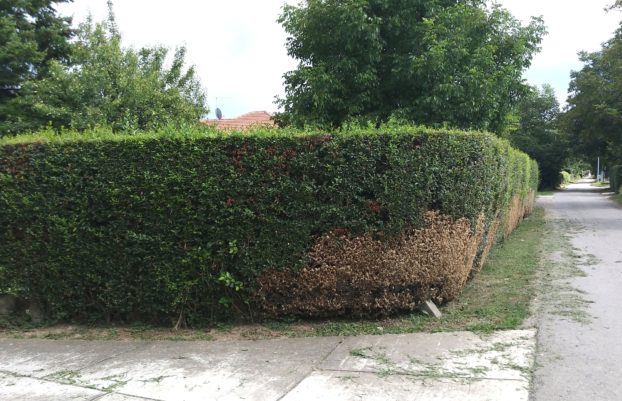 Buxus sp. (mostly B. sempervirens) aka common box tree is Cydalima’s favorite host. Symptoms resemble burns, due to defoliation, usually in lower branches. But, in time the entire plant gets yellowish and dies back, with no more tissue left to photosynthesize.