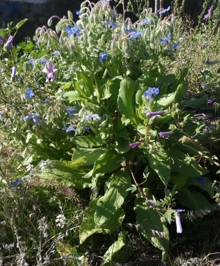 Borage, commonly known as a starflower, is an annual flowering plant. The family is Boraginaceae, native to the Mediterranean region, but naturalized in many other parts of Europe. Usually grows like a weed, as a garden escape, but is also famous for its light fragrance and anti-inflammatory effect as a herb.